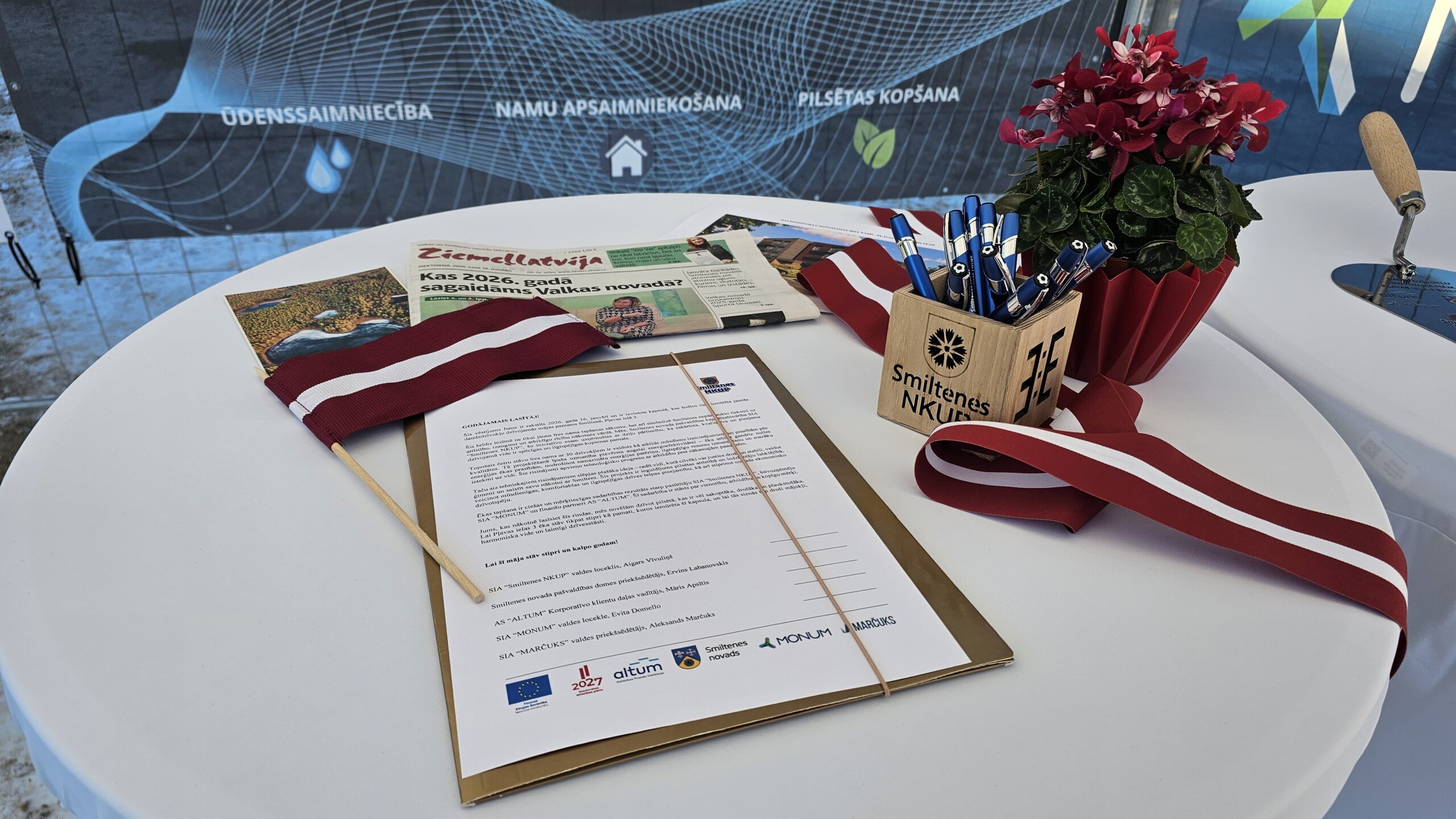 Jaunajā ēkā laika kapsulas iemūrēšanā piedalījās SIA “Smiltenes NKUP” valdes loceklis Aigars Vīvuliņš, Smiltenes novada pašvaldības domes priekšsēdētājs Ervins Labanovskis, AS “ALTUM” korporatīvo klientu daļas vadītājs Māris Apsītis, SIA “MONUM” valdes locekle Evita Domello, kā arī citi projekta īstenošanā iesaistītie pārstāvji.